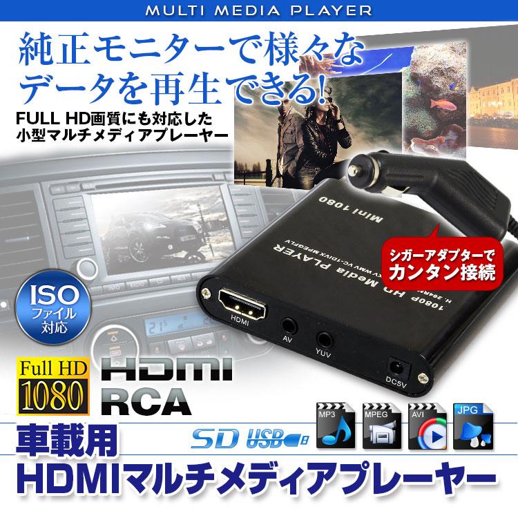 楽天市場 3 Offクーポン発行中 マルチ メディアプレーヤー 車載用 Hdmi フルhd Iso対応 純正モニター シガーアダプター 動画再生 Sd Usb 様々なファイルに対応 Iso Avi Mp あす楽対応 カーパーツ Katsunoki国際
