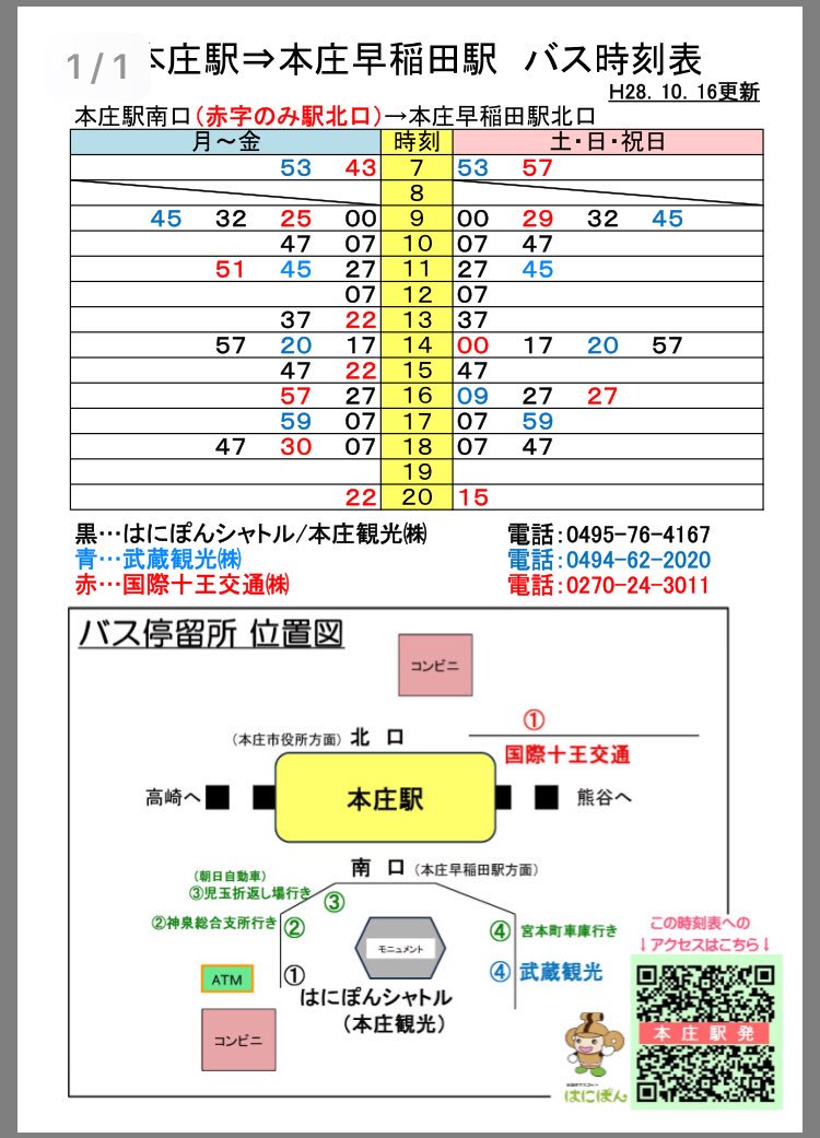 かがやくごったん Auf Twitter 本庄市の本庄 本庄早稲田バスの時刻表が見つかったので参考に