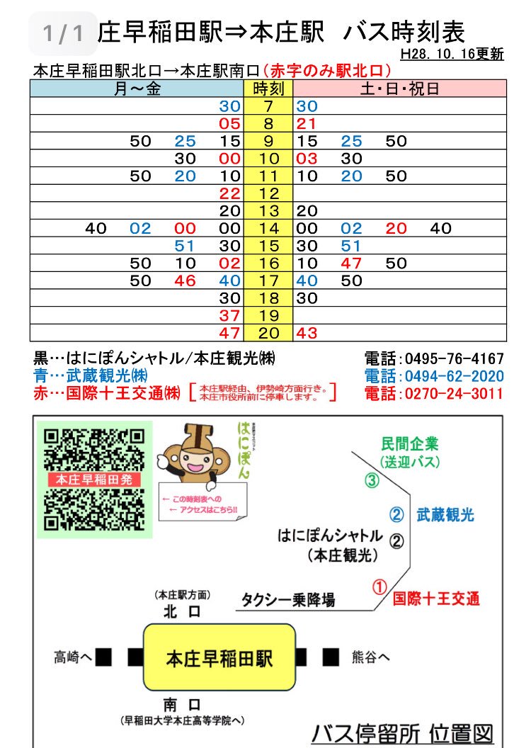 かがやくごったん On Twitter 本庄市の本庄 本庄早稲田バスの時刻表が見つかったので参考に