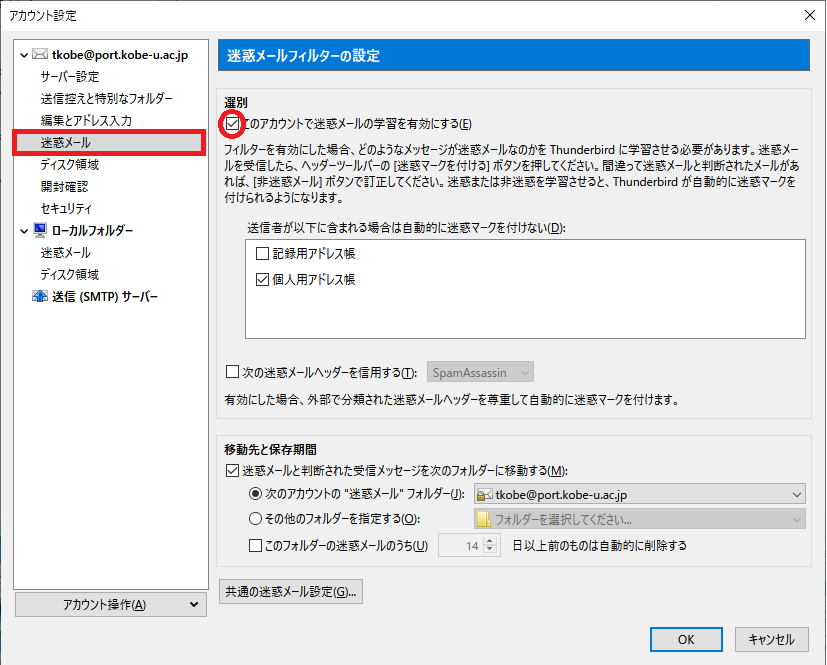 Thunderbirdでの迷惑メール対策法 Windows 神戸大学情報基盤センター