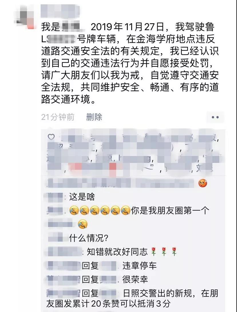 日照一司机违章后发了条朋友圈 好友竟纷纷点赞