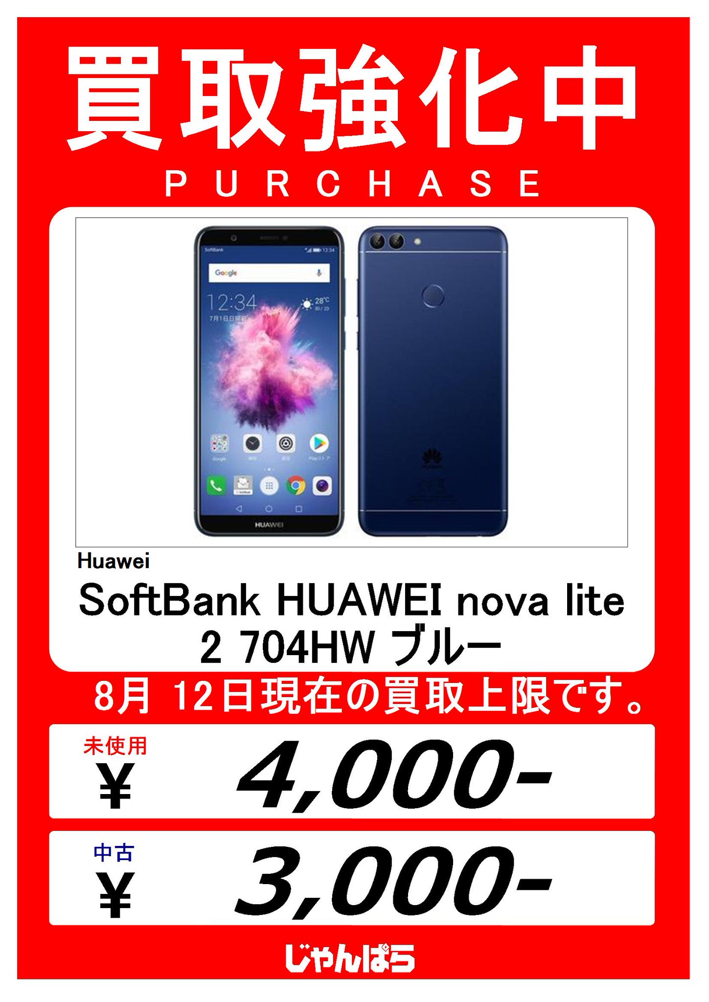 じゃんぱら札幌店 On Twitter 買取強化中 Huawei Softbank Huawei Nova Lite 2 704hw 8 12 現在 中古上限買取価格 3 000 買取価格はコチラで検索できます Https T Co Eye230eji1 じゃんぱら 札幌 中古 買取 Https T Co 6j6tsahk0w