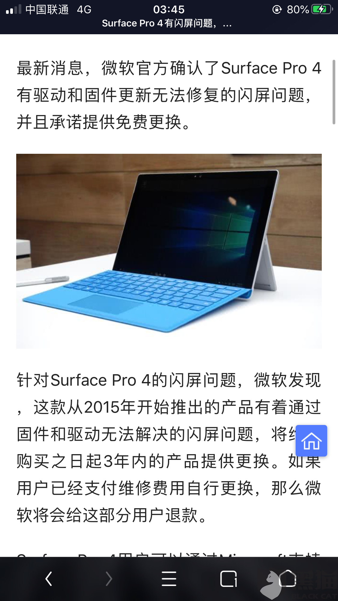 黑猫投诉 Surface Pro4闪屏缺陷 微软 闪屏 新浪新闻