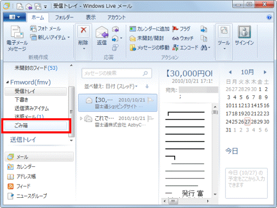 富士通q A Windows Live メール ごみ箱 フォルダーのメールをすべて削除する方法を教えてください Fmvサポート 富士通パソコン